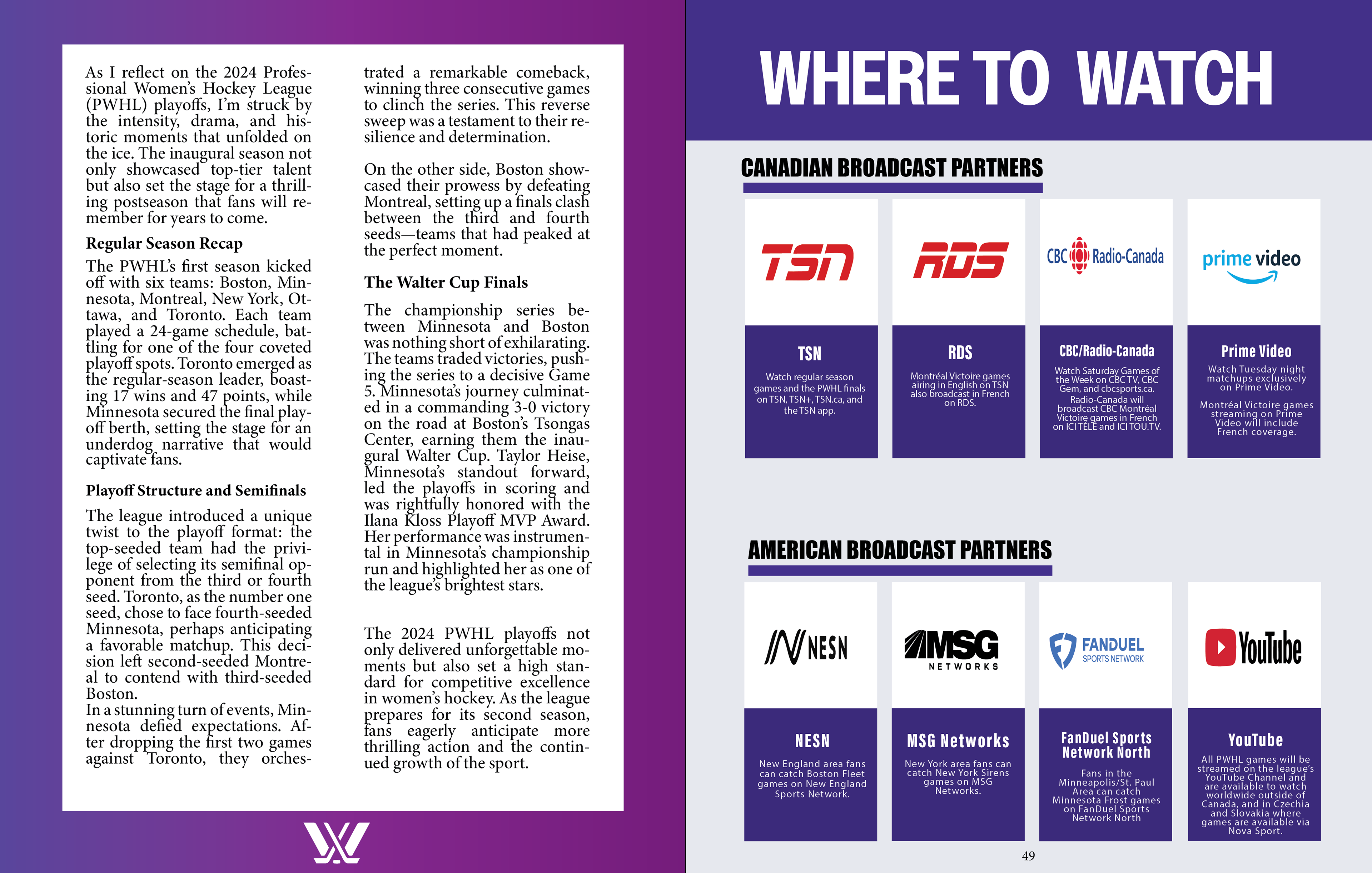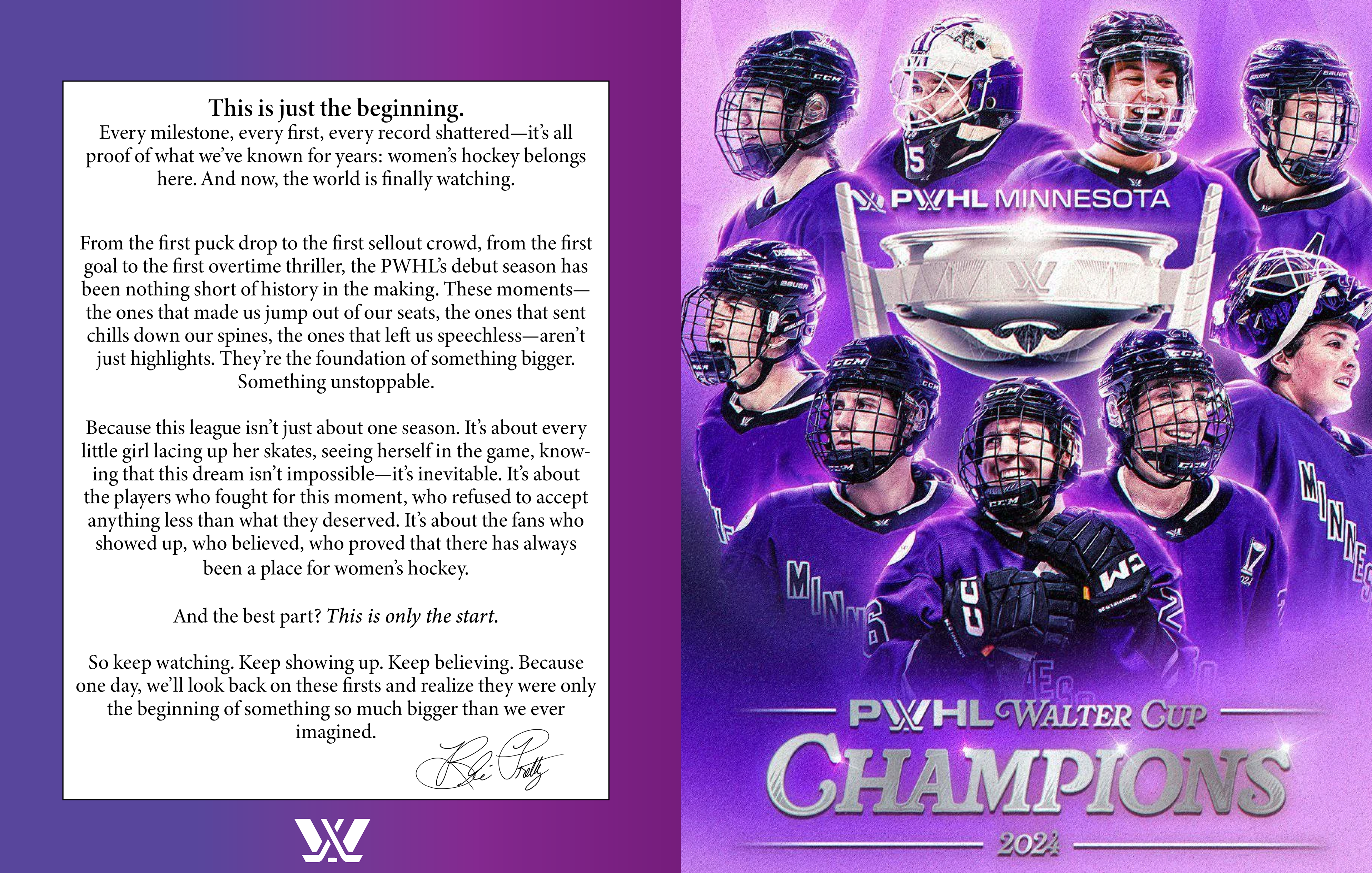 This magazine was a passion project for me. I've been a dedicated women's hockey fan my entire life, following womens hockey very closely since I was a kid. Hockey has been a huge part of my life—I played for years and had the chance to meet many incredible athletes who are now part of the PWHL.